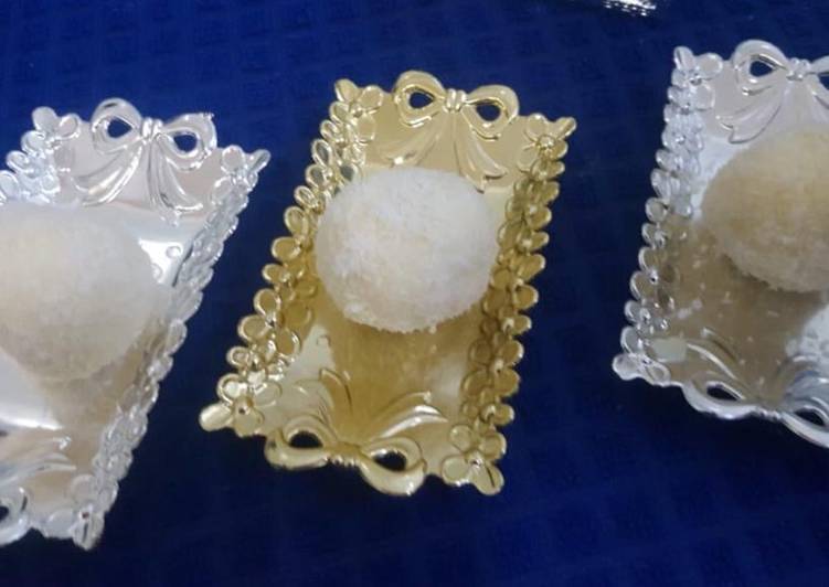 Recipe of Super Quick Homemade Raffaello. Coconut almond balls with white chocolate